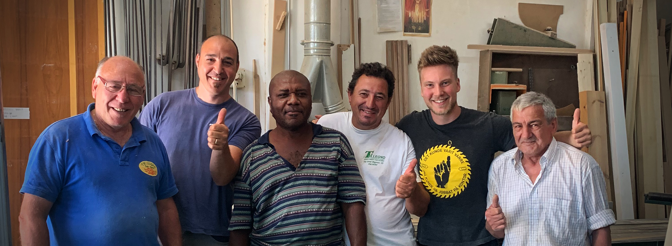 Bilden: Blivande möbelsnickaren Fredrik Fellgren, näst längst till höger, med sina italienska kollegor.